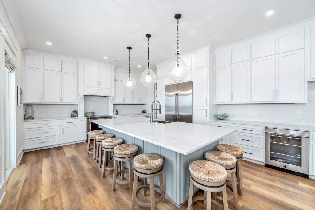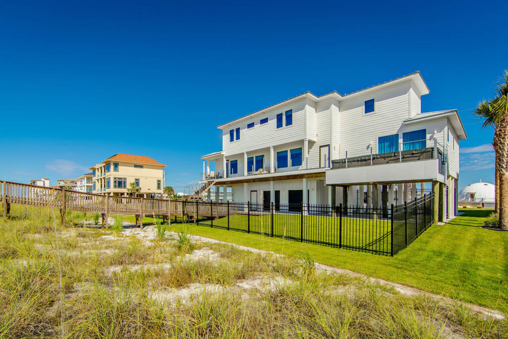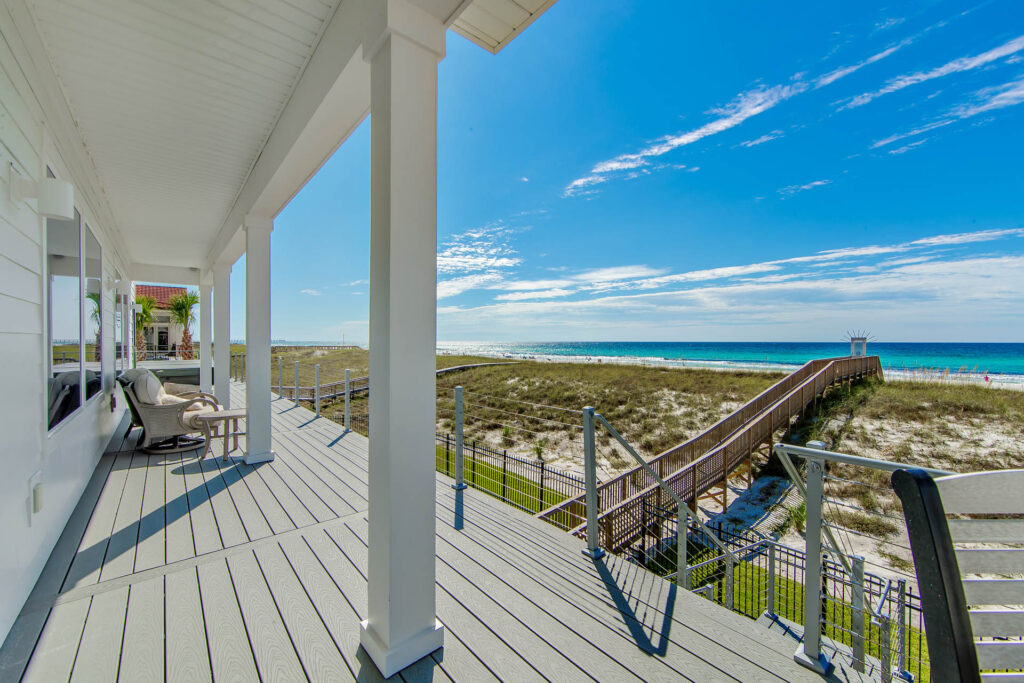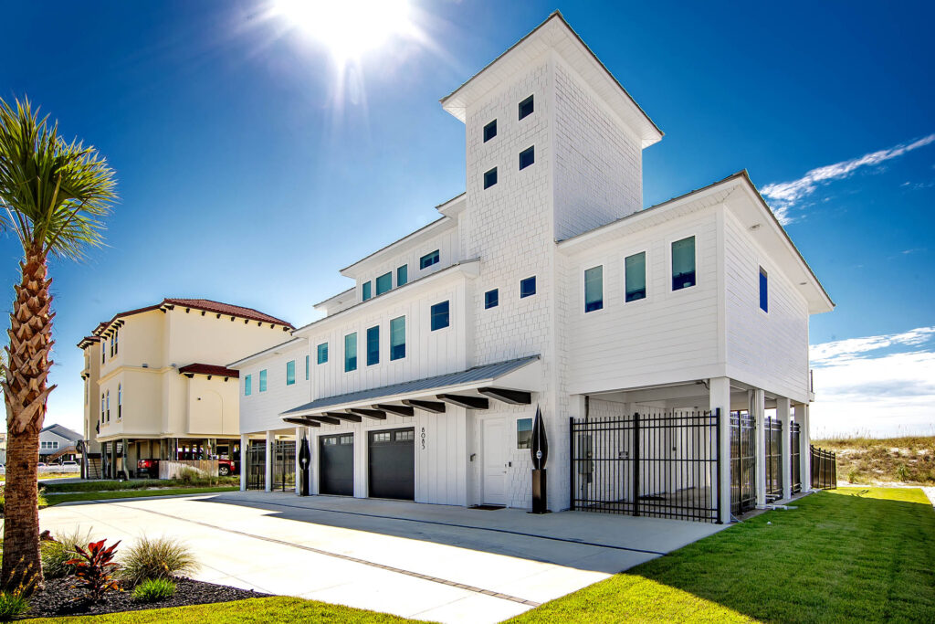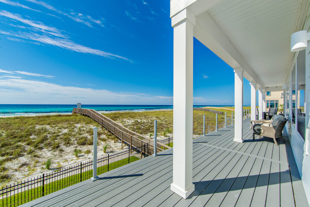 8085 Gulf Blvd, Navarre Beach: 3954 SF living, 6 BR, 5 1/2 bath modern coastal piling home.8085 Gulf Blvd, Navarre Beach: 3954 SF living, 6 BR, 5 1/2 bath modern coastal piling home.The green zip board is impregnated with a water resistive barrier coating design to act as a secondary water resistive barrier behind the finished siding and to substantially reduce air infiltration.
