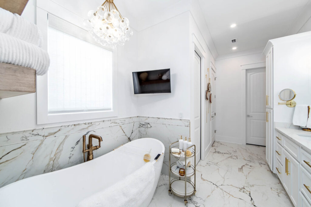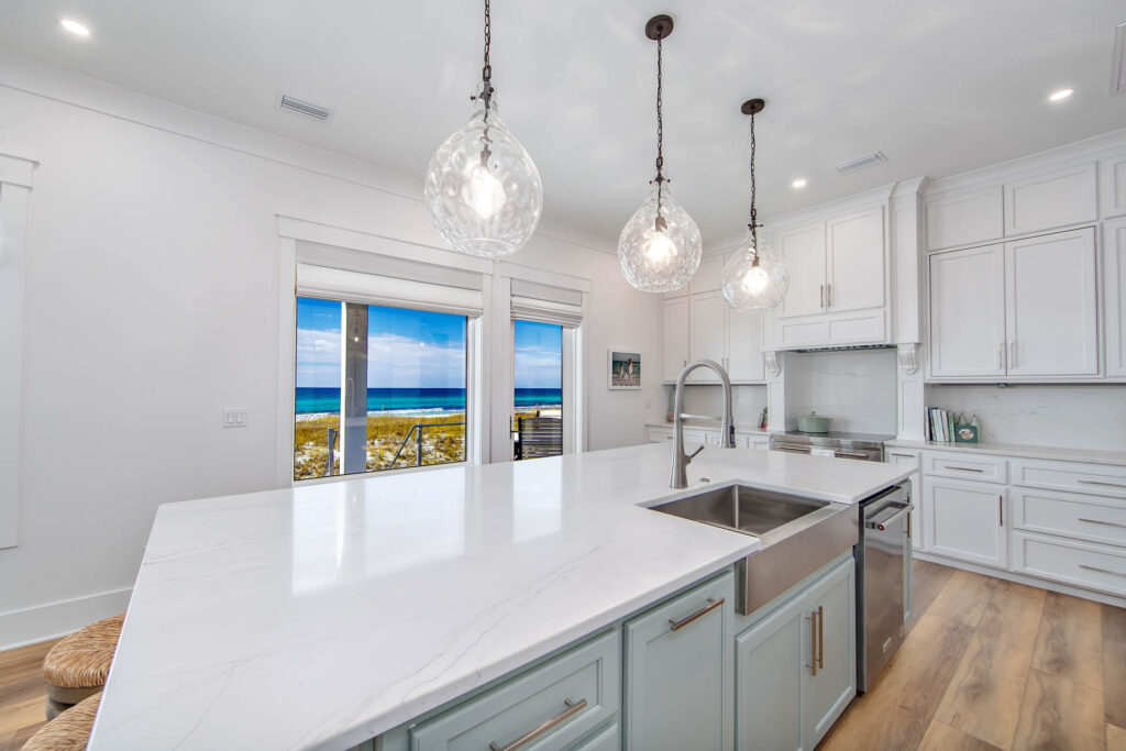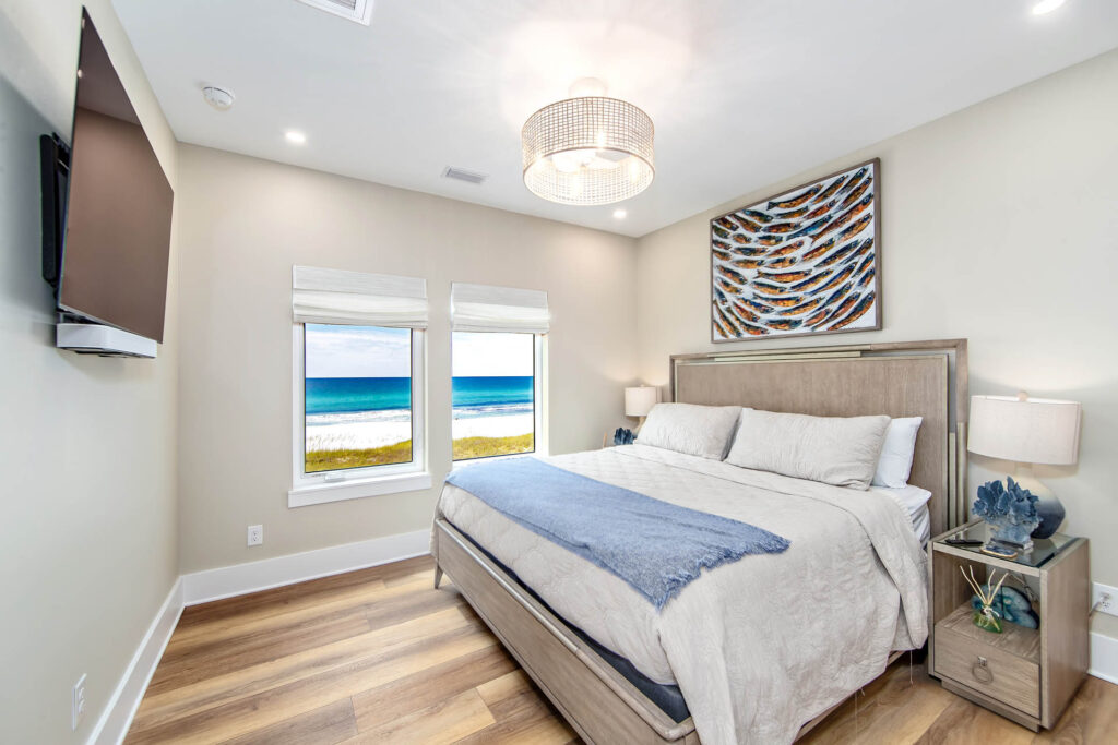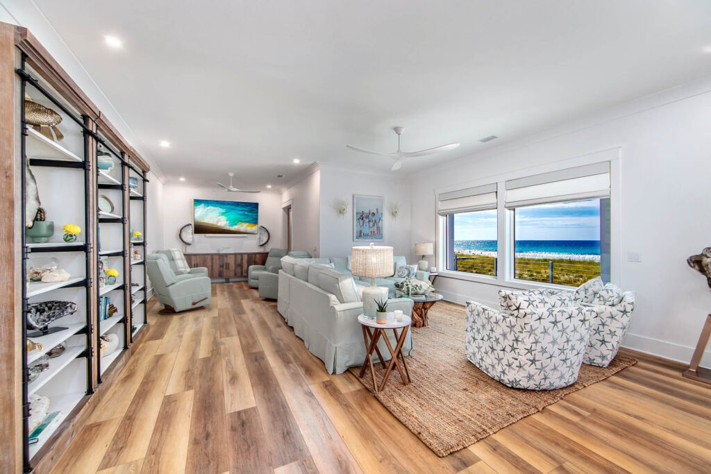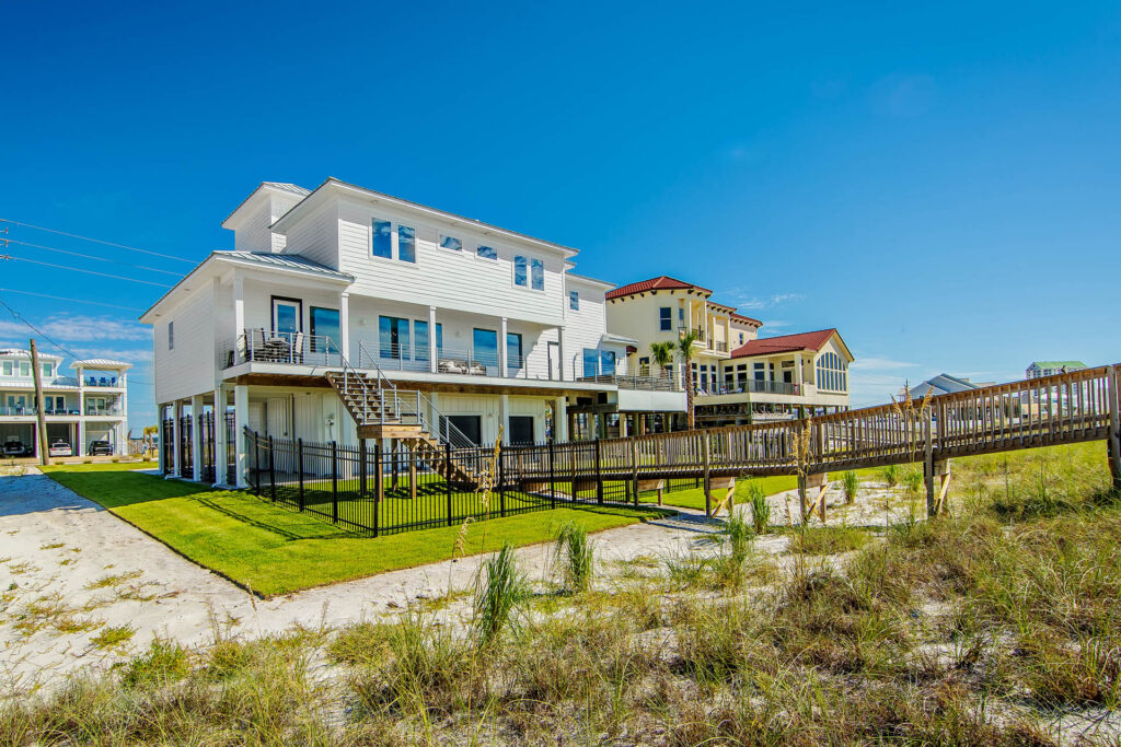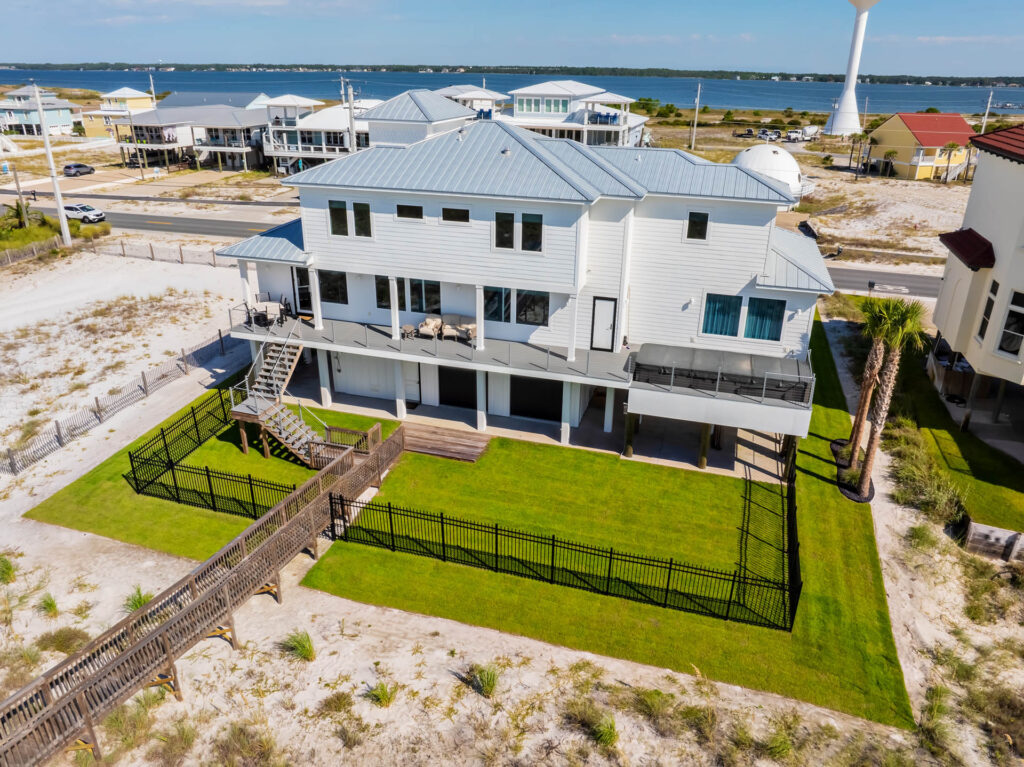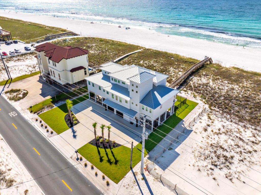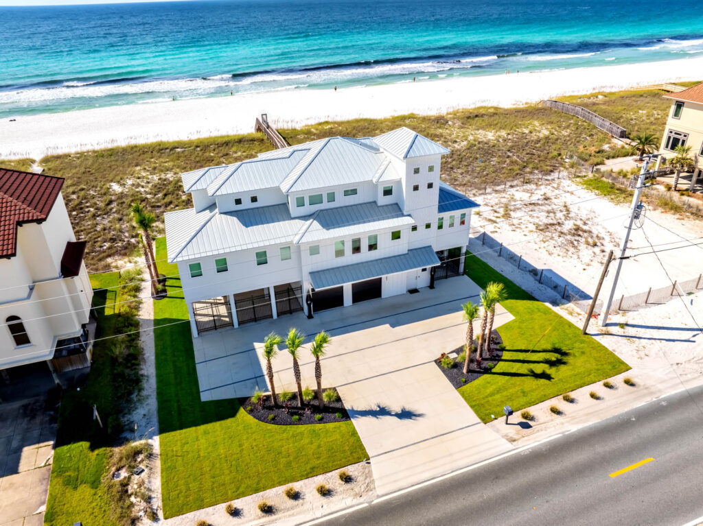 8085 Gulf Blvd, Navarre Beach: 3954 SF living, 6 BR, 5 1/2 bath modern coastal piling home.
