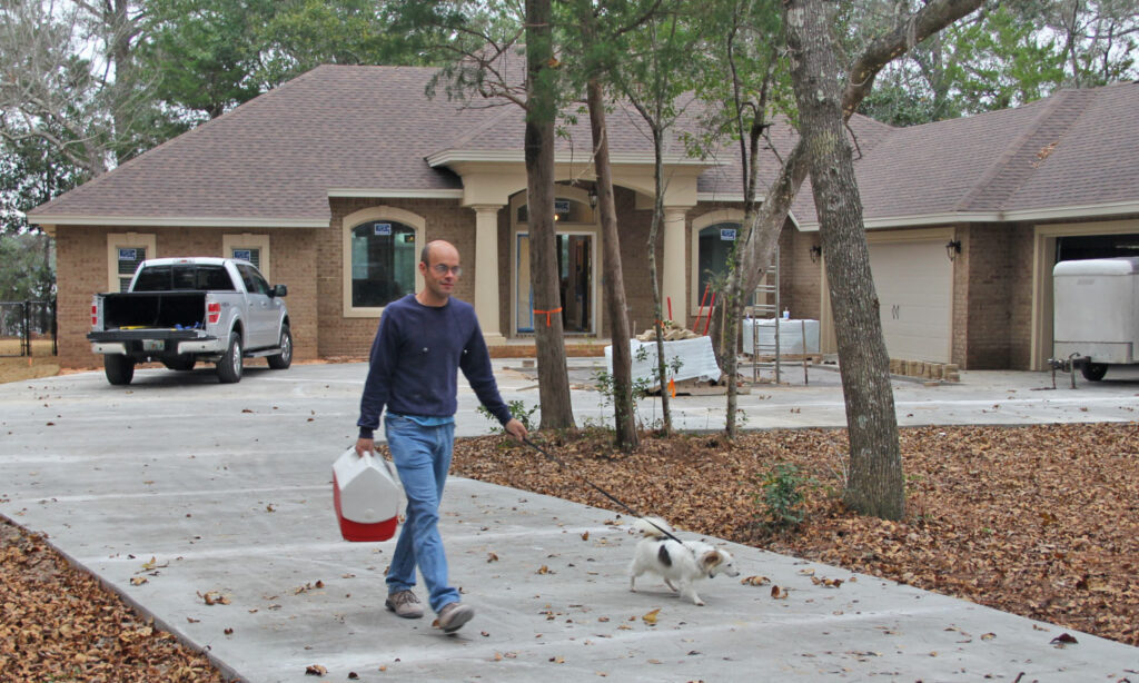 Julio and crew pours the safe room walls and ceiling. Steel reinforced concrete designed to withstand 250 MPH tornado force winds. The safe room serves as the master bedroom walk-in closet allowing quick and convenient access during an emergency. It’s the perfect place to store valuables, also, like having a personal bank vault. Keeps you safe during a hurricane and your valuables secure while you’re away.