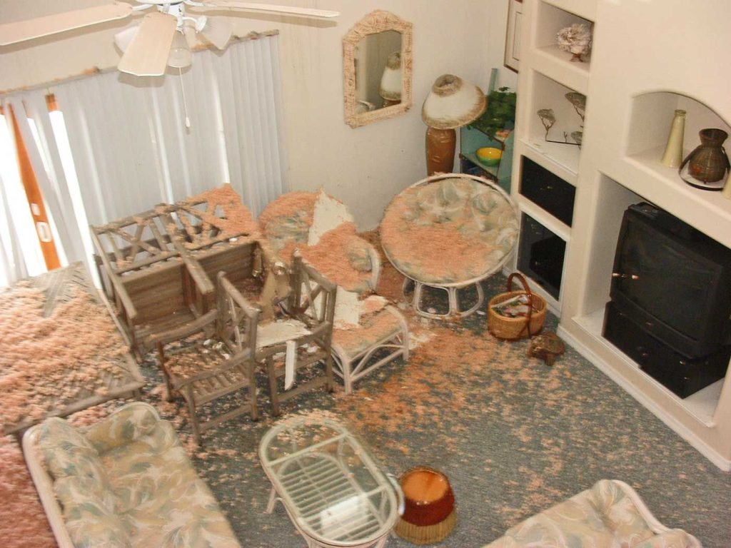 This is why you need a peal and seal subroof. A few shingles blew off, water came in, and plop goes the ceiling. Learn more about Storm-Tuff construction.