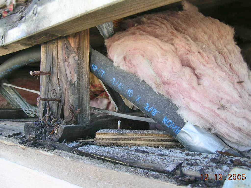 This is a floor truss rotted away by water intrusion. It has lost all of its bearing capacity at the wall and the floor above it is actually sagging right here. We had to jack up the wall and repair the truss in place.