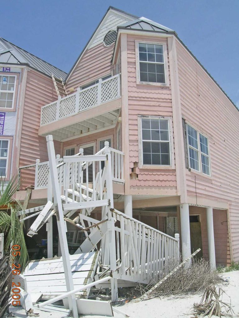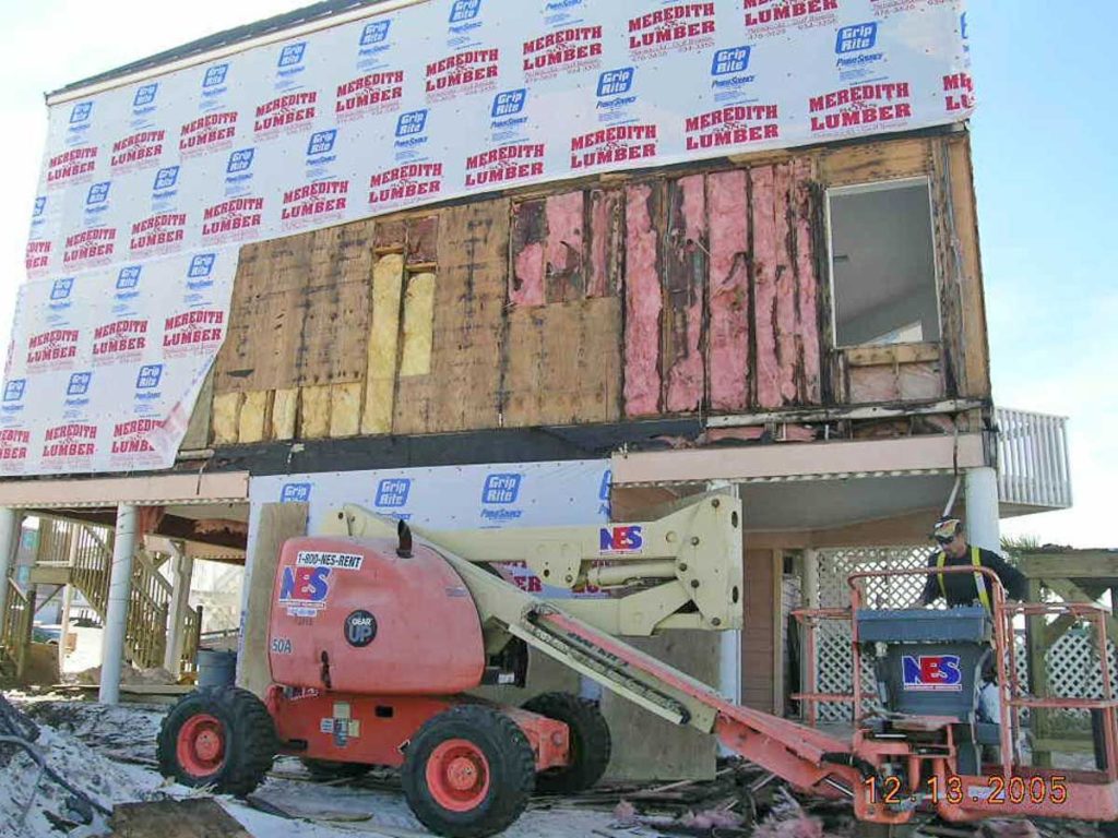 Hurricane Ivan exposed a lot of water intrusion that had been going on well before the storm and rotting out the siding, structural sheathing, and framing.